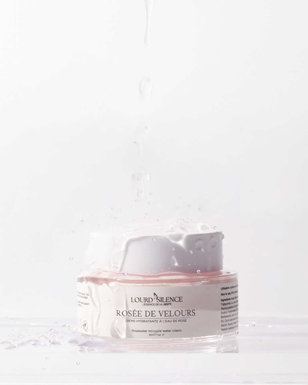 Crème :Aqua/Eau, eau florale de Rosa Damascena, alcool cétéarylique, triglycéride caprylique/caprique, alcanes de noix de coco, caprylate de glycéryle, glycérine, squalane, stéarate de glycéryle, laurate d'isoamyle, cellulose microcristalline, beurre de Butyrospermum Parkii (karité), extrait de sporocarpe de Tremella Fuciformis, hyaluronate de sodium, jus de fruit de Cocos Nucifera (noix de coco), extrait de feuille de Camellia Sinensis, jus de feuille d'Aloe Barbadensis, extrait d'Eclipta Prostrata, extrait de feuille de Melia Azadirachta, huile de graines de Moringa Oleifera, coco-caprylate/caprate, stéaroyl glutamate de sodium, glucoside cétéarylique, gomme de cellulose, amidon de tapioca, citrate de stéarate de glycéryle, acide citrique, diacétate de glutamate tétrasodique, acide caprylhydroxamique, hydroxyde de sodium, Citronellol, Géraniol.