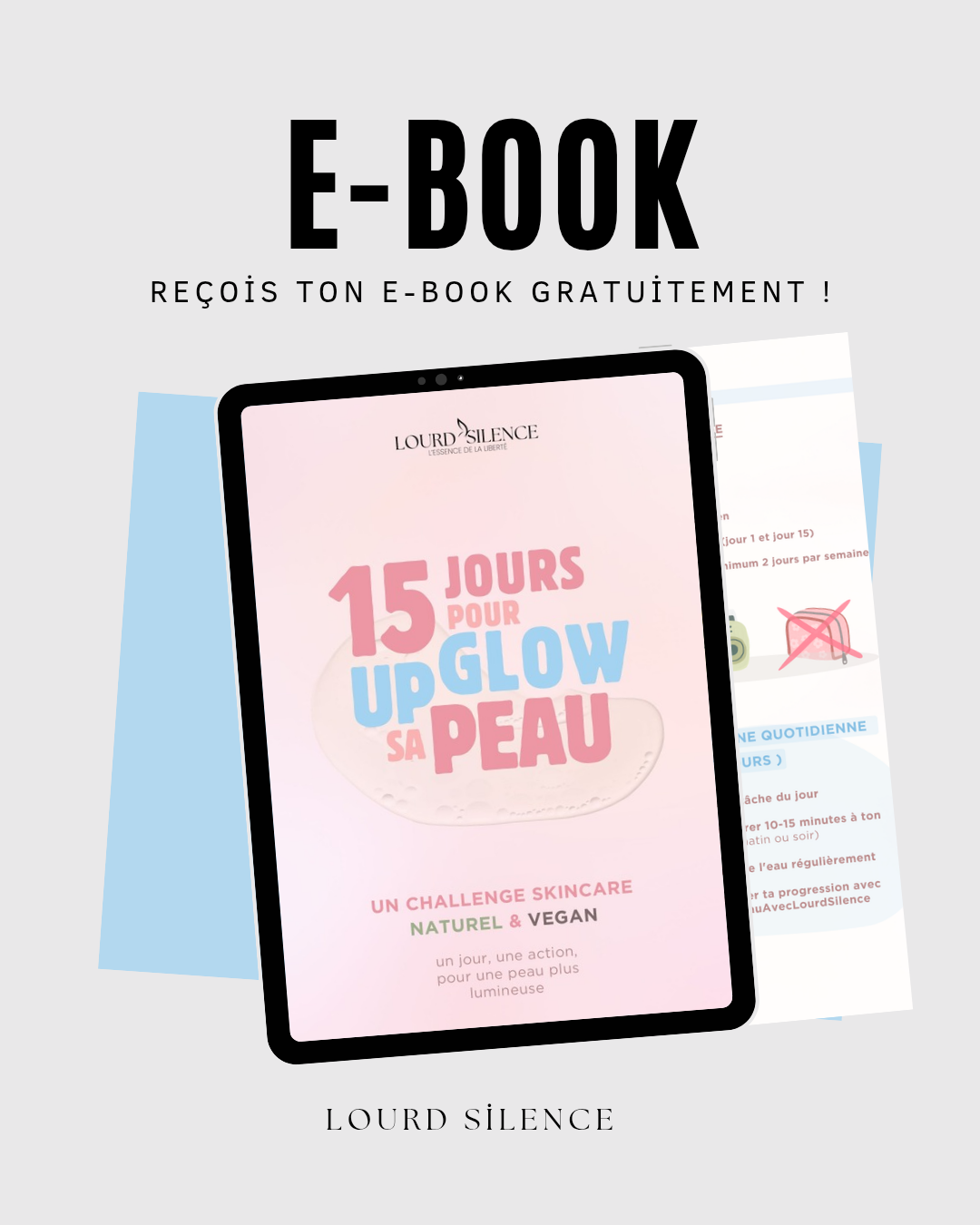 Inspiré du challenge skincare « 15 jours pour une peau éclatante » lancé par la marque Lourd Silence, ce eBook t’accompagne chaque jour avec des conseils concrets, des rituels simples et des moments de self-care qui changent tout.